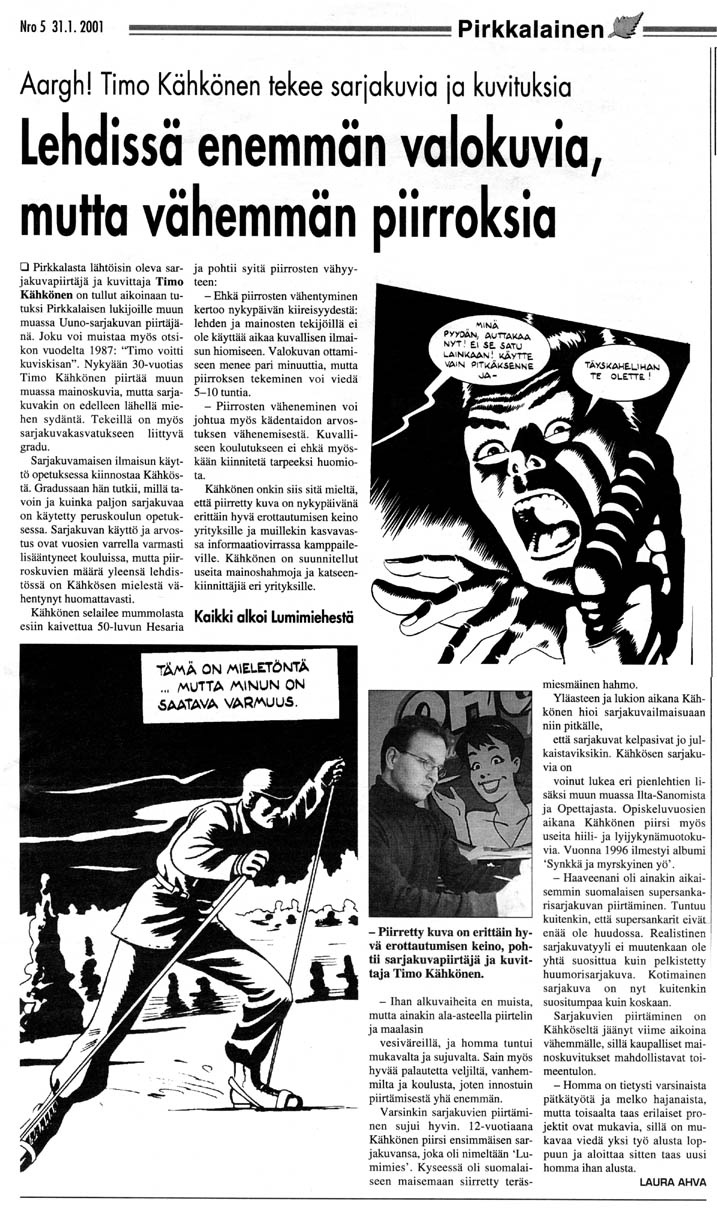 Pirkkalainen julkaisi sarjakuvataiteilija Timo Kähkösen haastattelun "Lehdissä enemmän valokuvia, mutta vähemmän piirroksia" (tekstinä / näköispainoksena). |