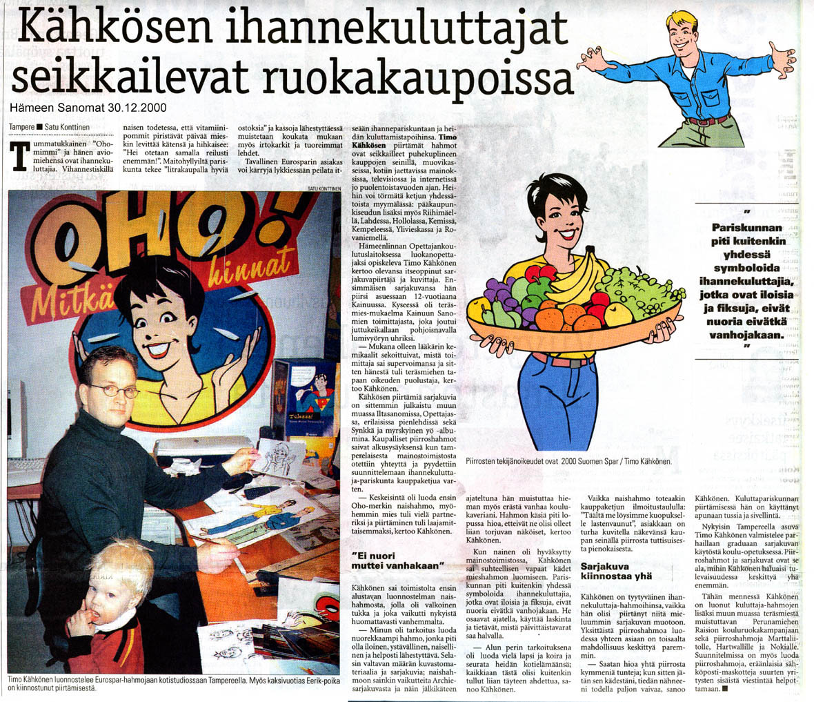 Hämeen Sanomat julkaisi sarjakuvataiteilija Timo Kähkösen haastattelun "Kähkösen ihannekuluttajat seikkailevat ruokakaupoissa" (tekstinä / näköispainoksena). Aiheena olivat Kähkösen piirtämät Eurospar-piirroshahmot. |