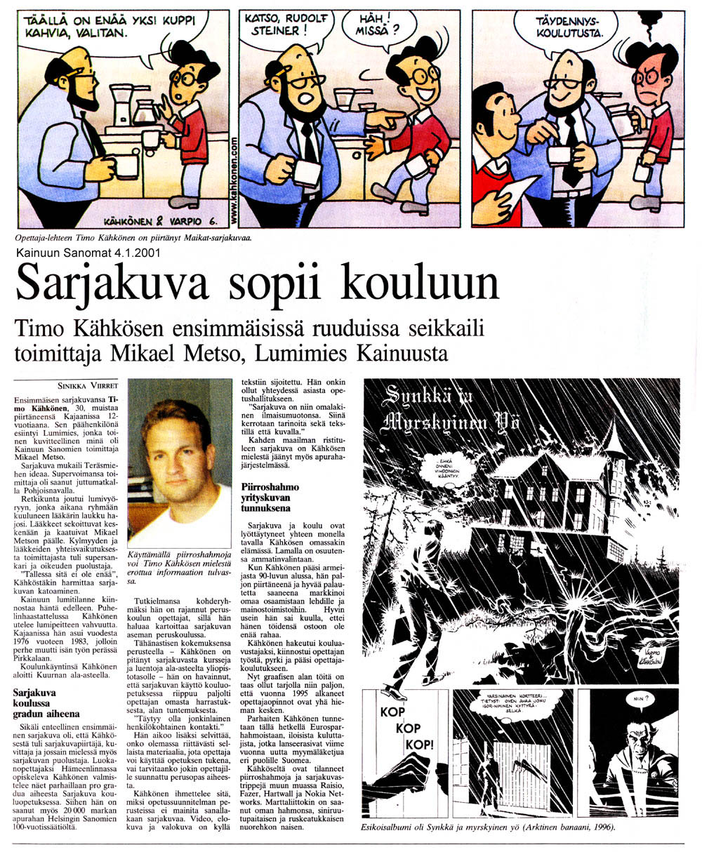 Kainuun Sanomat julkaisi sarjakuvataiteilija Timo Kähkösen haastattelun "Sarjakuva sopii kouluun" (tekstinä / näköispainoksena). |