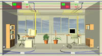 kytkentöjen muunneltavuutta toimistohuoneessa ja myymälässä.